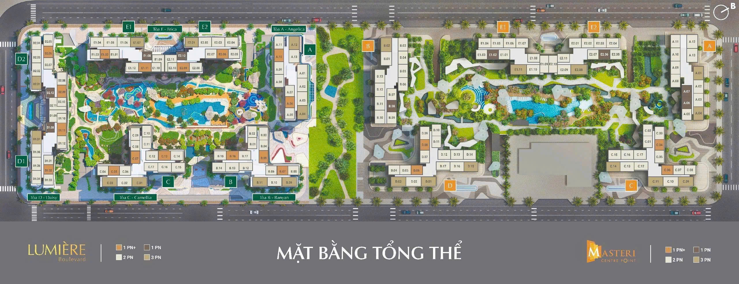 🔹 Quy mô: 5.094 căn hộ view sông – Gồm 10 tháp cao 22 đến 39 tầng