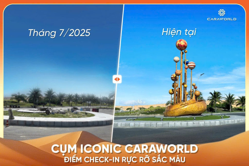 ✅ Cổng chào biểu tượng CaraWorld bằng thép cao 18m – điểm nhấn đón chào du khách tại cửa ngõ.