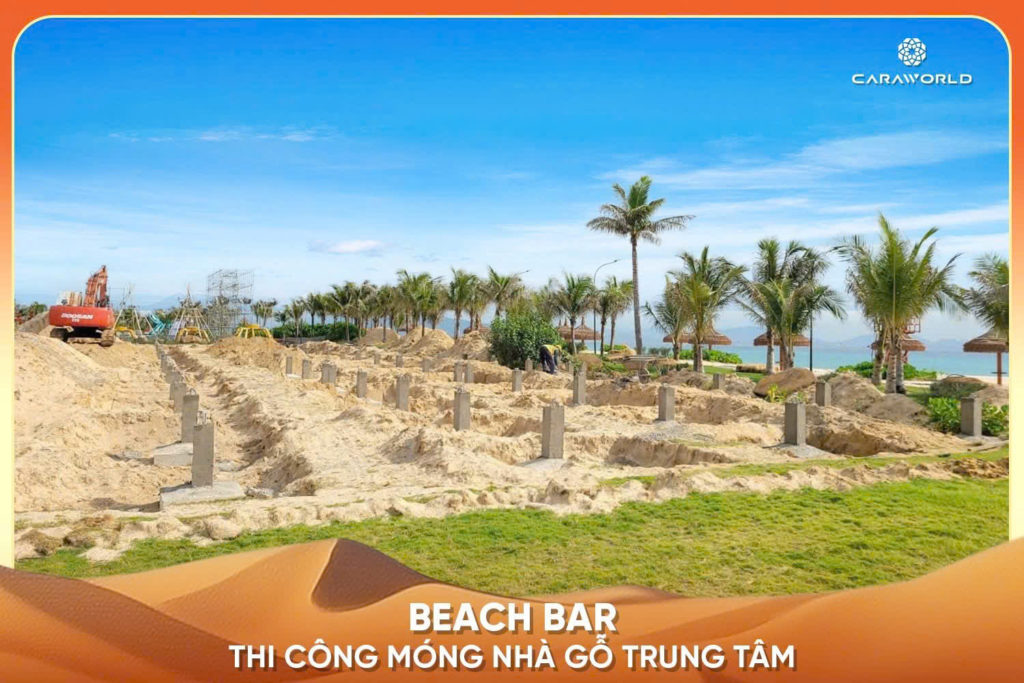 📍 Beach Bar: Thi công móng nhà gỗ trung tâm.