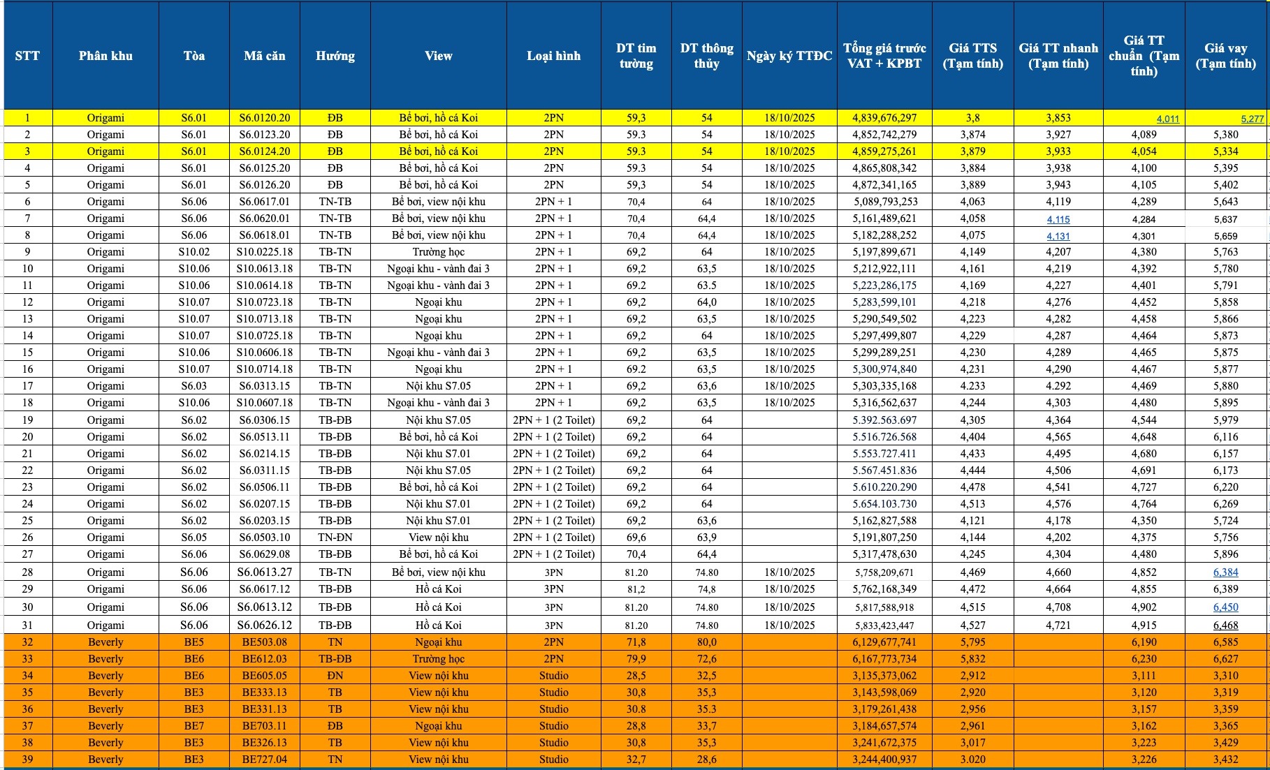 Diện tích: 59-70m2