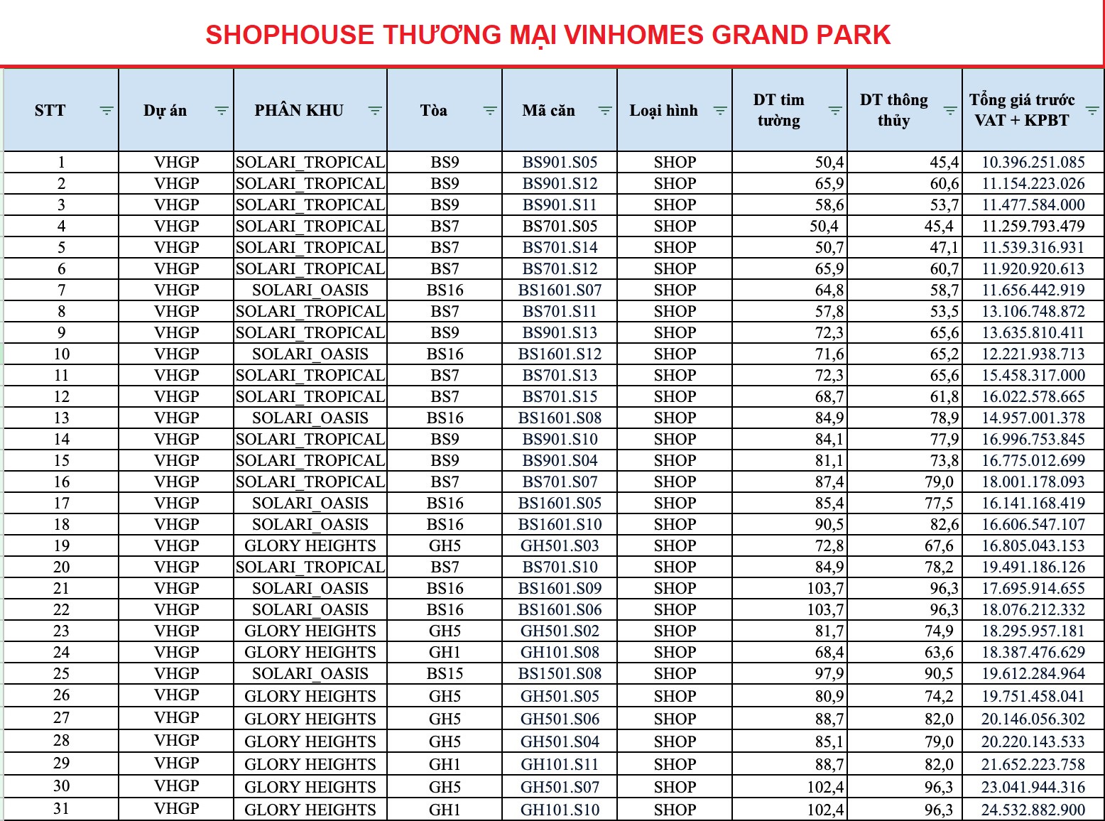 Cập liên tục CSBH, PTTT và Sản phẩm mở bán mới nhất